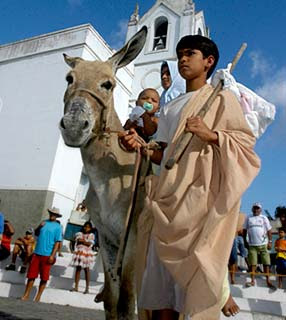 Sim, quando sacristão, ainda participei de dois momentos: uma peça teatral no papel de José conduzindo Maria e Jesus num jegue/jumento que tomara emprestado a meu tio Nelito e, olha que por azar o animal fez cocô em pleno altar das solenidades e apaguei as luzes da igreja antes da saída das pessoas e, a professora Odete, na época tomando conta da igreja, hoje em companhia de minha bisavó Carrola, me chamou de patão, entre os corredores religiosos.